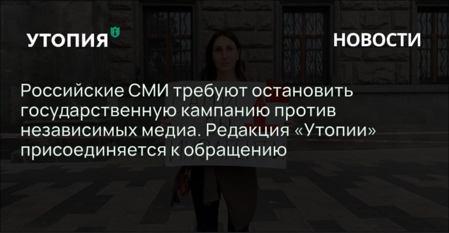 Редакция «Утопии» присоединяется к этому обращению, с которым уже выступили «Медуза», «Дождь» («Медуза» и «Дождь» включены Минюстом в реестр «иностранных средств массовой информации, выполняющих функции иностранного агента»), «Новая газета», Romb, Wonderzine, The Village, Forbes, Republic, 7х7 и другие медиа, а также Профсоюз журналистов и работников СМИ.