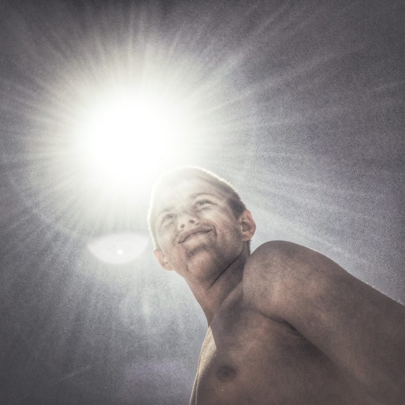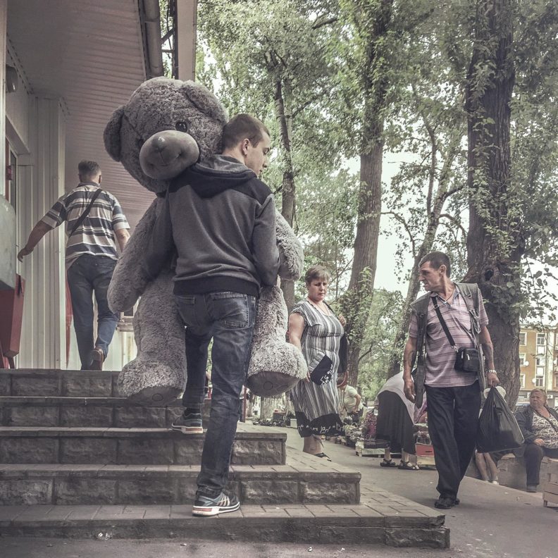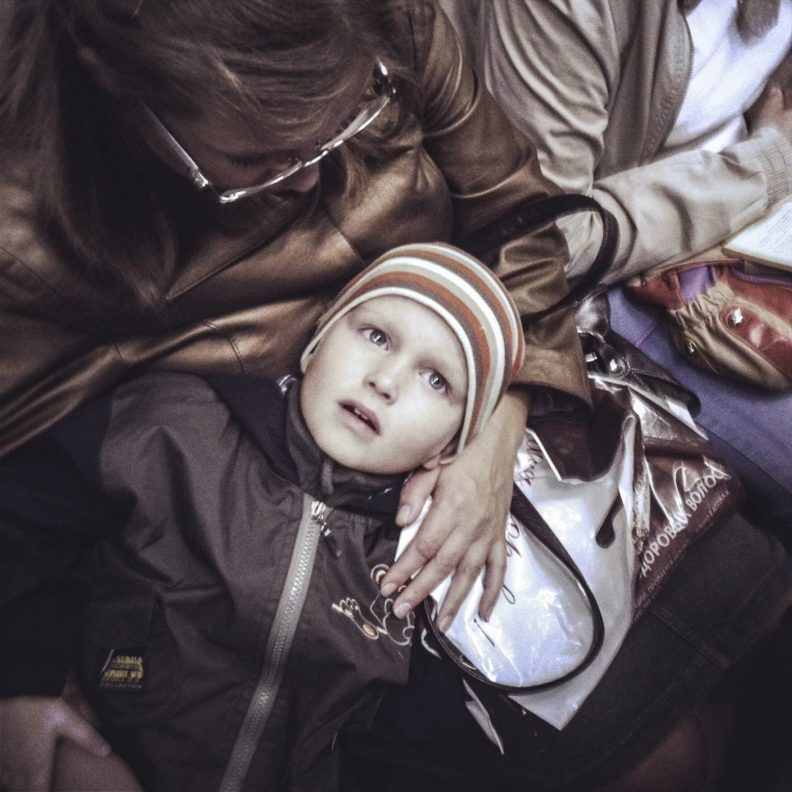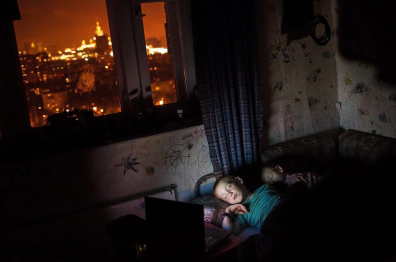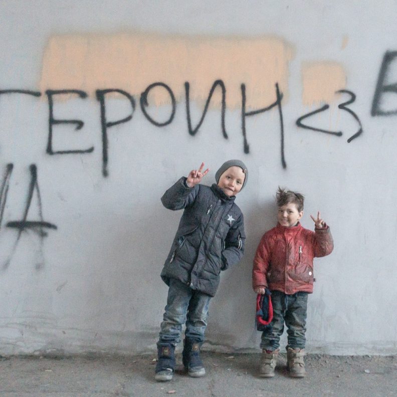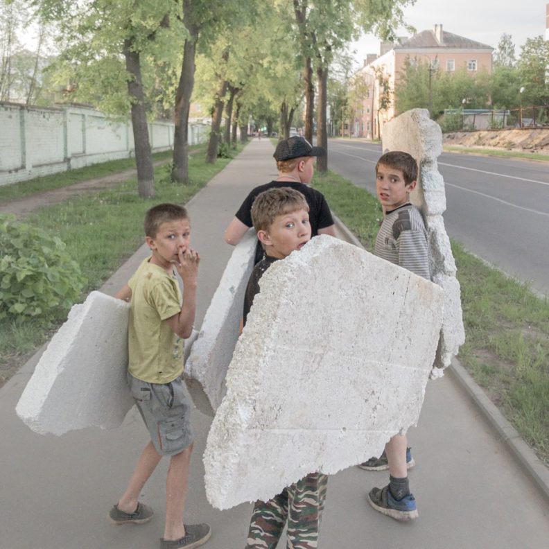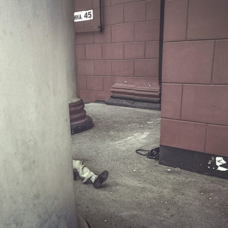 Мне кажется, Дима всю жизнь вспоминал этот свой детский взгляд. Пытался снова его ощутить, удержать, выразить. И дети из коррекционных интернатов его цепляли как раз этим утробным, непосредственным взглядом на все. Думаю, и фотками, и своей социалкой он всегда хотел позаботиться о том себе. Как-то у него была карточка из Иркутска, где на бетонных ступеньках тоскует одиннадцатилетний гопник. Подпись была «Можно выйти из дома, сесть на самолет, пролететь 5 000 километров, пройти две остановки по главному проспекту города, свернуть во двор перед парком и оказаться у своего подъезда». Я чувствовал, что Дима все еще сидит там, мерзнет и боится идти домой. Он всегда снимал детское одиночество — и тех же самых детей, только уже рассованных по взрослым телам, слегка отупевших, спившихся, запихнувших это одиночество далеко под шкаф, вспоминающих его только с бодуна — но в остальном мало изменившихся. И еще он везде замечал нежность между родителями и детьми, снова и снова, не мог перестать.