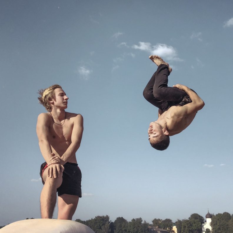 Брейк капитально все изменил. Тогда в нашей деревне все на нас как ни идиотов смотрели. Но через какое-то время у нас началось получаться. А Саня жил в общаге, и мы попросили у коменданта, чтобы нас пустили в какую-то пристройку, где мы могли танцевать. У нас не было ни асфальта нормального, ни оргалита — картонка из-под телевизора лежала на земле, было очень сложно танцевать. А потом кто-то про нас доложил в комитет по делам молодежи. Они не понимали, что мы делаем — спорт какой-то странный — но для них это было лучше, чем сидение в подъездах. Хотя и в подъездах мы точно так же сидели.
