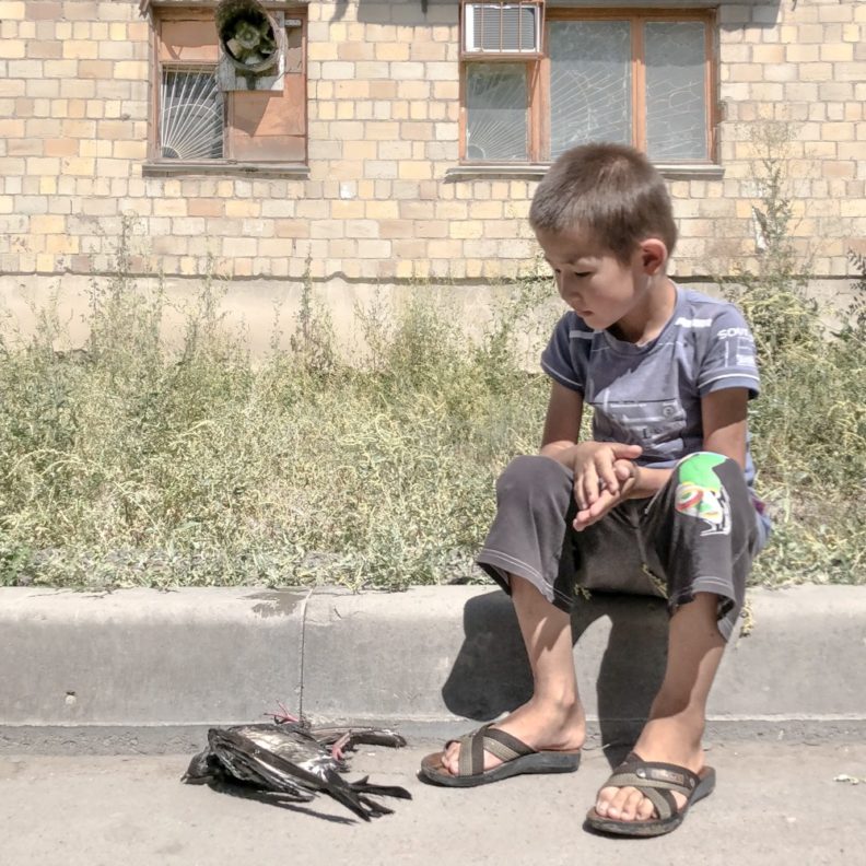 На очень многих фотках у Димы - ребенок на фоне какого-то убогого задника, какой-нибудь блочной стены, чего-то максимально некрасивого. Диму постоянно волнует это сочетание. Ребенок - он такой маленький еще, живой, и он этой живостью контактирует с брутально-равнодушной средой. Оно же почему такое уебищное - потому, что за ним не ухаживают, не любят, всем похуй. На это душа сразу и напарывается.