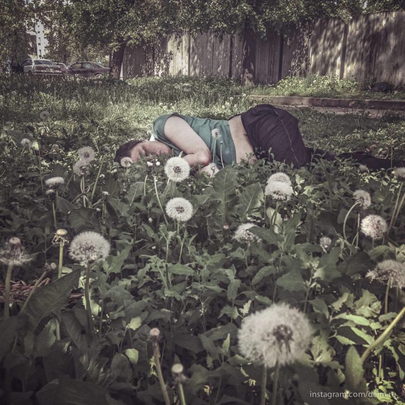 Мне кажется, он жил на какой-то грани куража и отчаяния. Просто жить для него было мучительно, нужно было что-то сделать, убежать из себя во внешний мир, увидеть крутую карточку, серию, проект — на это время он мог забыться. Но чтобы удержаться на этом лезвии, в творческом состоянии, нужно было пить. Это дарило поток, но сильнее расшатывало психику. А главное, творчество давало убежать от себя только на какое-то время. В конце концов он сдавался и начинал торчать. От Димы я впервые услышал это слово «сняться» — вмазаться и сбросить тяжесть существования.