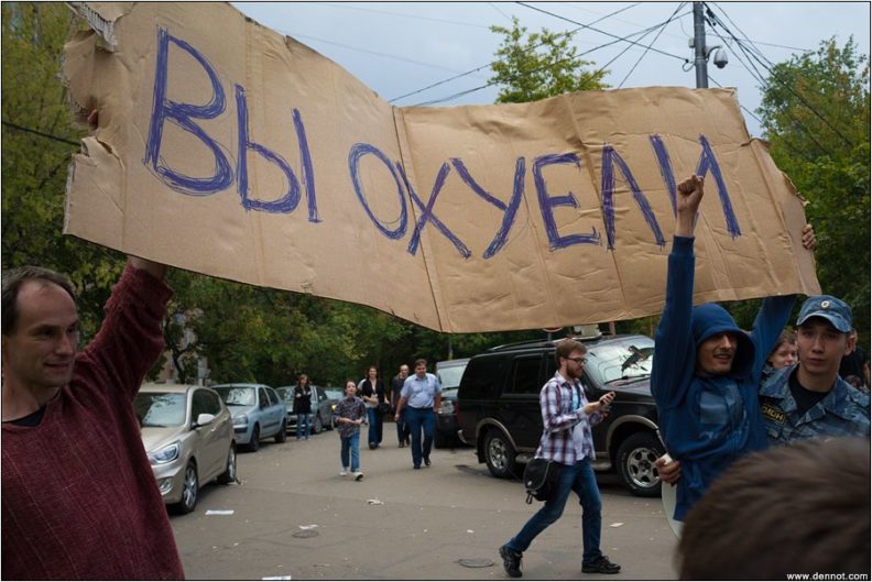 В тот момент наша жизнь вертелась вокруг политики, митингов и автозаков, но про это я как-то не записывал. Единственное, что осталось — фотка, как мы держим картонку на приговоре «Пусси Райот». Когда объявили, что девчонкам дали страшный по тем временам срок в два года, мы стояли в онемевшей толпе. «Блядь, надо что-то сделать, иначе я сейчас напьюсь», — сказал Дима. Я нашел картонку от холодильника, мы разложили ее на земле. «Что писать?» — спросила Аня. «Вы охуели,» — сказал Дима. За словом в карман он не лез. У Димы был ужасно быстрый ум, какой-то разогнанный процессор.
