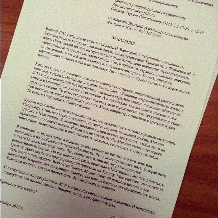 В отличие от нормальных журналистов, Дима вообще не увлекался повесткой, не искал ярких тем, ничего поверхностного. Растекаться вширь ему было неинтересно. Обычно он просто начинал чем-то жить, бурил вглубь в самом невзрачном месте — и оттуда удивительным образом вытаскивал все смыслы. Мне кажется, Дима одним из первых придумал этот новый жанр блоггерской журналистики, когда человек каждый день пишет про социальную проблему, с которой работает, но вообще без отстранения, а как про свою частную жизнь, никак не скрывая эмоции. Жанр этот многое поменял, потому что корень этих самых проблем как раз в том, что общество от них отгораживается специальными институтами, языком, терминами и т. п. Я помню, районная опека не хотела делать ремонт в комнате, которая Мише полагалась как детдомовцу. Дима написал им письмо и принес на кухню нам показать. Я читал его и ржал — никогда не видел таких писем в официальные органы. Они тоже охуели, но именно оно и подействовало. В общем-то вся Димина социальная деятельность во-многом сводилась к тому, чтобы своей искренностью убедить людей в уебищной системе повести себя по-человечески.