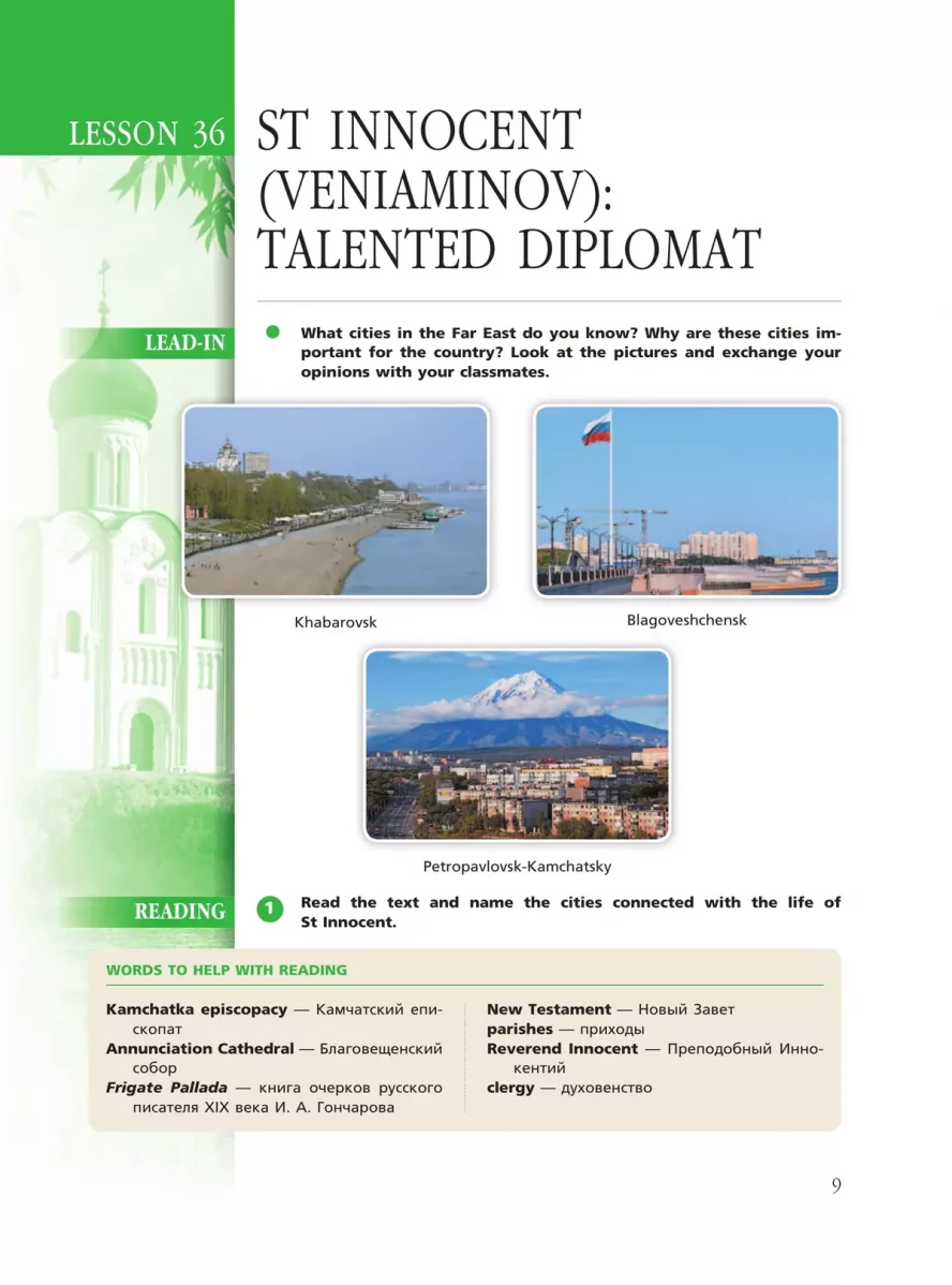 А вот учебник для 10-11 классов «Английский язык. Славное наследие России. 19 век» выглядит по-настоящему инновационно. На обложке крупными буквами написано Glorious Russia, а содержание  «интегрировано со школьным курсом изучения истории и включает в себя основные исторические события и жизнеописания выдающихся исторических деятелей России XIX века».
