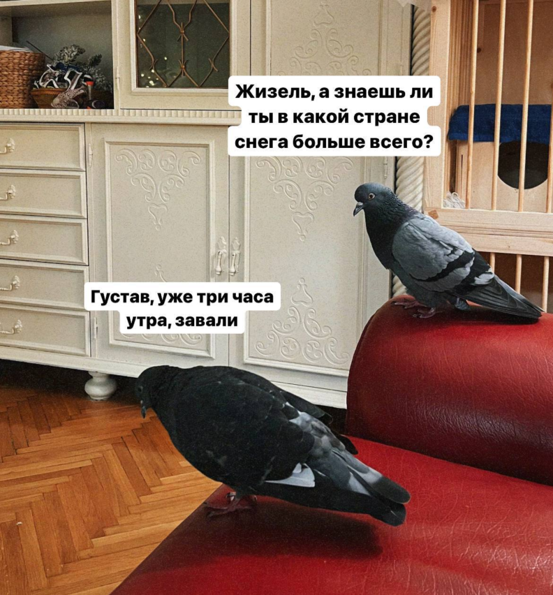 По ее словам, когда у нее появился Густав, она нашла в Инстаграме огромное количество потрясающих блогеров-иностранцев, которые уже давным-давно содержат голубей как домашних. Они живут с ними в квартире, принимают вместе с ними ванну и показывают, что жизнь с голубями может быть очень чистой, цивилизованной и красивой. Теперь у Густава тоже есть свой телеграм-канал. У него почти 6 тысяч подписчиков.