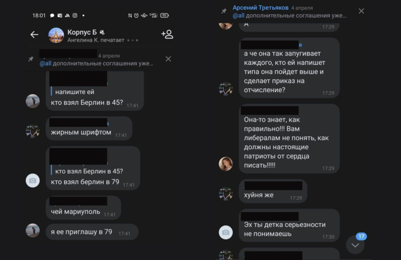 Еще один студент Антон (имя изменено) рассказал «Черте» о травле учащихся. По его словам, им начали писать читатели Z-пабликов, угрожать физической расправой, говорить, чтобы они все «свалили в Украину».
