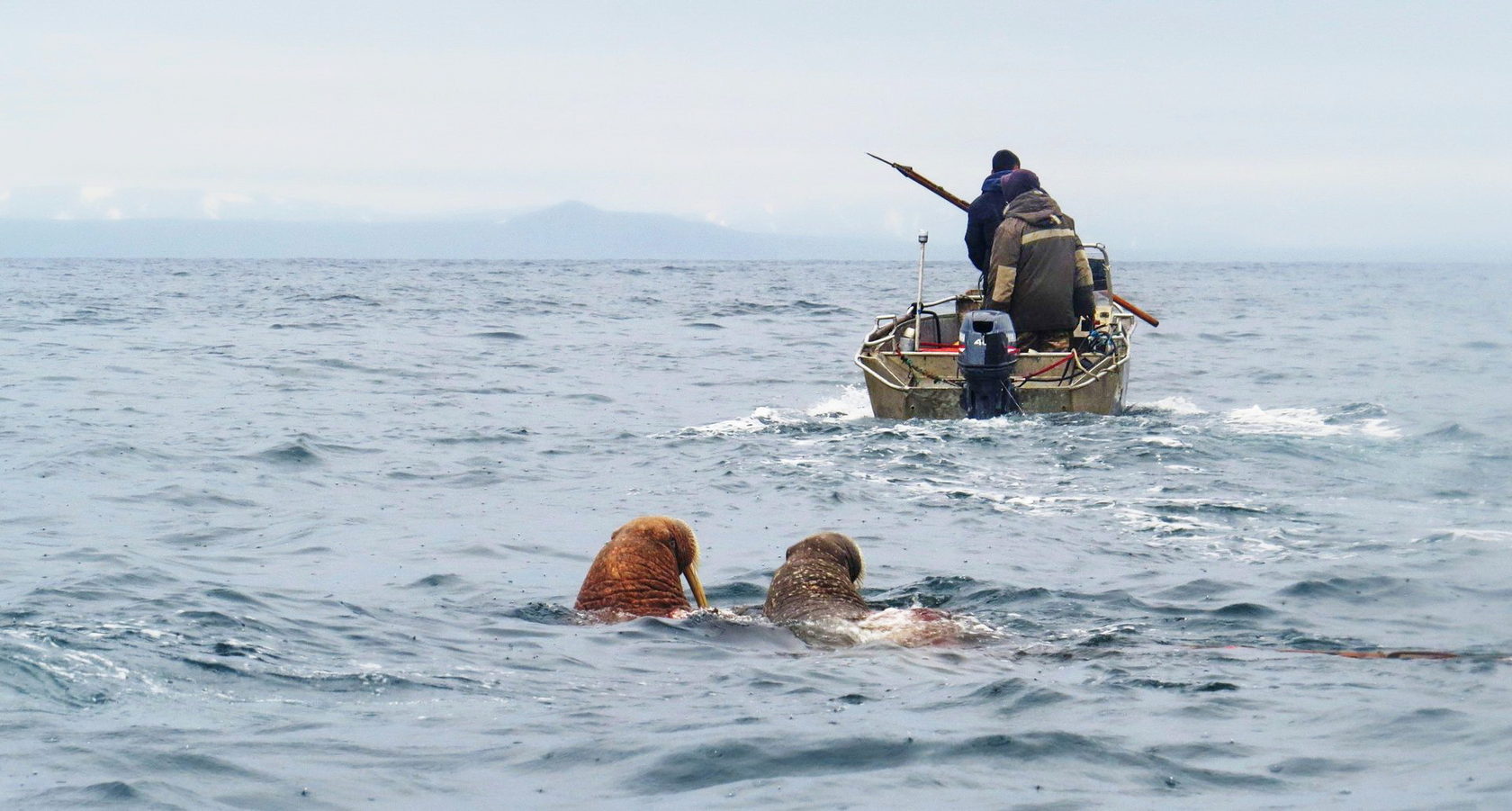 А пока Союз демонстрирует лояльность начальству, реальные проблемы морзверобоев только усиливаются. Охотники жалуются на нехватку горючего, которое распределяется Департаментом сельского хозяйства, сломанные рефрижераторы для хранения продукции, усложнение бюрократии, несправедливые квоты и последствия международной изоляции. «Раньше нам больше помощи было со стороны Аляски: дарственные лодки, моторы, датинганыОгнестрельное оружие, прикрепляемое к древку гарпуна. Длинный штырь на шарнире при попадании в кита бьёт в капсюль, который воспламеняет дымный порох, выстреливая металлической болванкой длиной 15–20 см диаметром 15–20 мм. Огнестрел является наиболее гуманным способом добычи кита. для гуманного убоя китов и патроны к ним. Это все оттуда шло», — рассказывает житель Провиденского района.