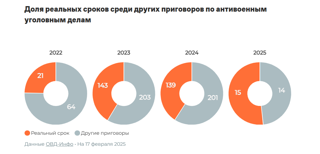 Большинство людей преследовали по первой части статьи, которая предполагает, что человек должен иметь минимум два решения суда по административным делам о дискредитации в течение одного календарного года. Это объясняет, почему пик применения этой статьи пришелся на 2023 год: за это время с начала вторжения у большинства политических преследуемых как раз появились вторые решения суда.